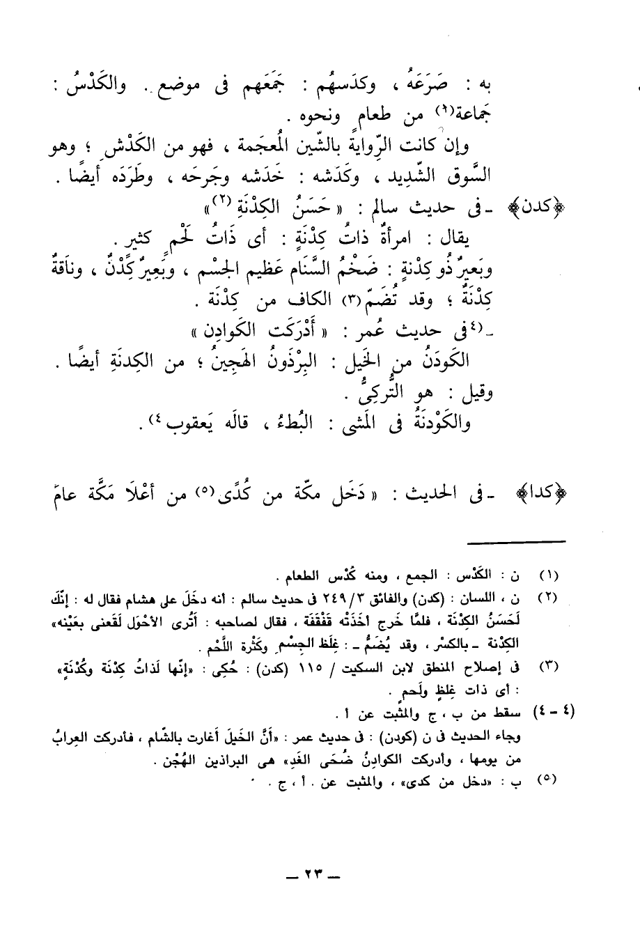 (¬3) في إصلاح المنطق لابن السكيت/ 115 (كدن): حُكِى: "إنها لَذاتُ كِدْنَة وكُدْنَةٍ": أي ذات غِلظٍ ولَحم.