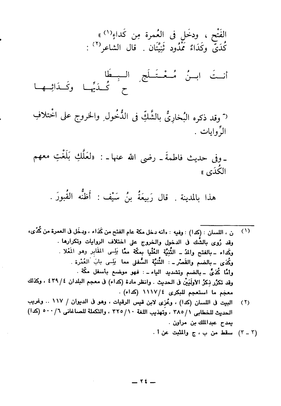(¬1) ن، اللسان: (كدا): وفيه: "أنه دخل مكّة عام الفتح من كَدَاء، ودخَل في العمرة من كُدًى"