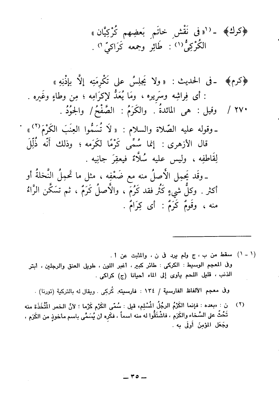 - وقَد يَحمِل الأَصلُ منه مع ضَعْفِه، مثل ما تَحمِلُ النَّخلةُ أو أكثر. وكلُّ شيءٍ كَثُر فقد كَرُمَ، والأَصلُ كَرَمٌ، ثم تسَكَّن الرَّاءُ منه، وقَومٌ كَرَمٌ: أي كِرَامٌ.