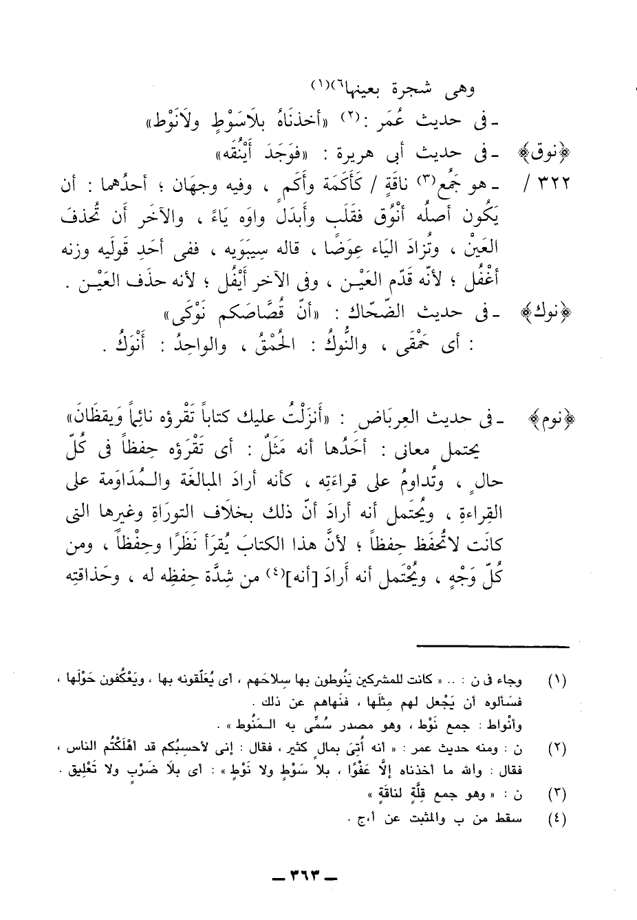 وأنْواط: جمع نَوْط، وهو مصدر سُمِّى يه المَنُوط".