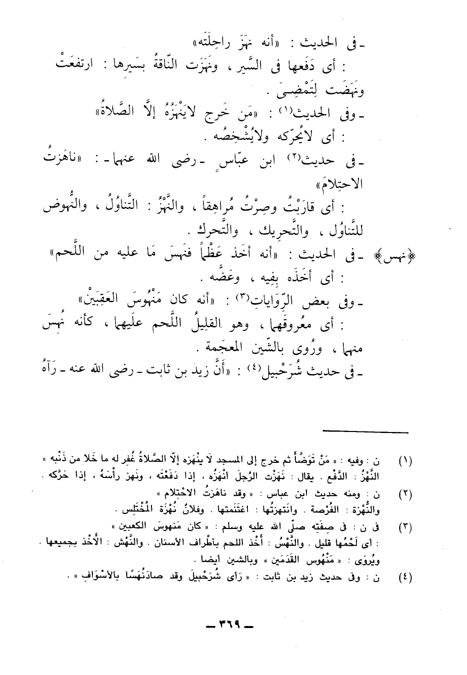 (¬4) ن: وفي حديث زيد بن ثابت: "رَأى شُرَحْبيلَ وقد صادَ نُهَسًا بالأسْوَافِ".