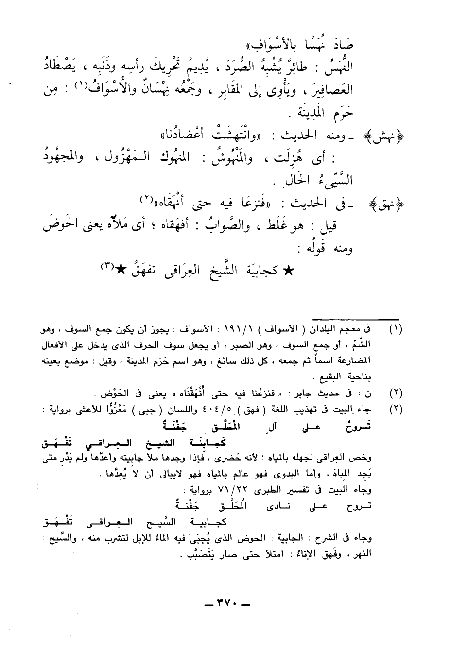 * كجابيَة الشَّيخ العِرَاقى تفهَقُ * (¬3)