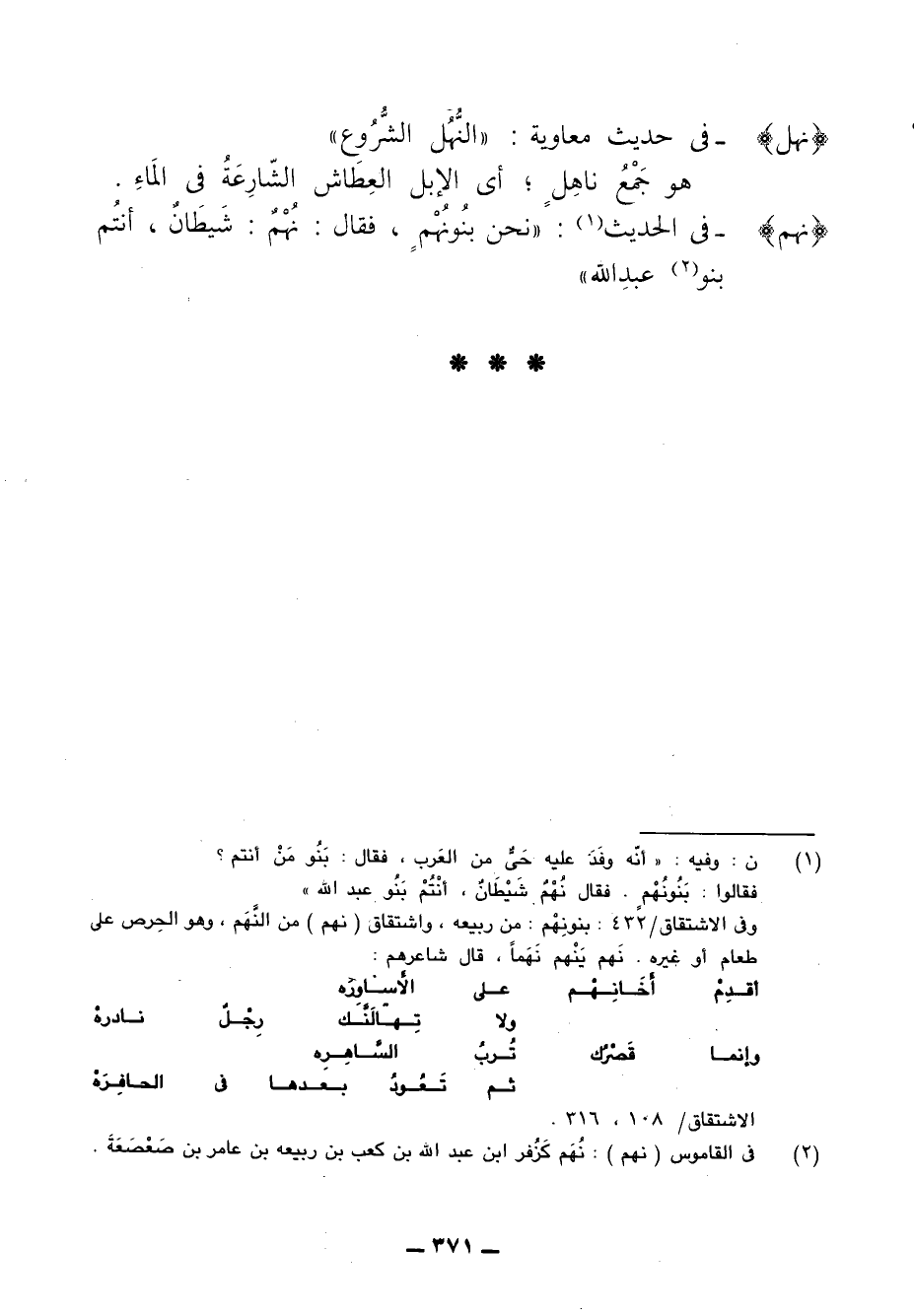 (¬2) في القاموس (نهم): نُهَم كَزُفر ابن عبد الله بن كعب بن ربيعه بن عامر بن صَعْصَعَةَ.
