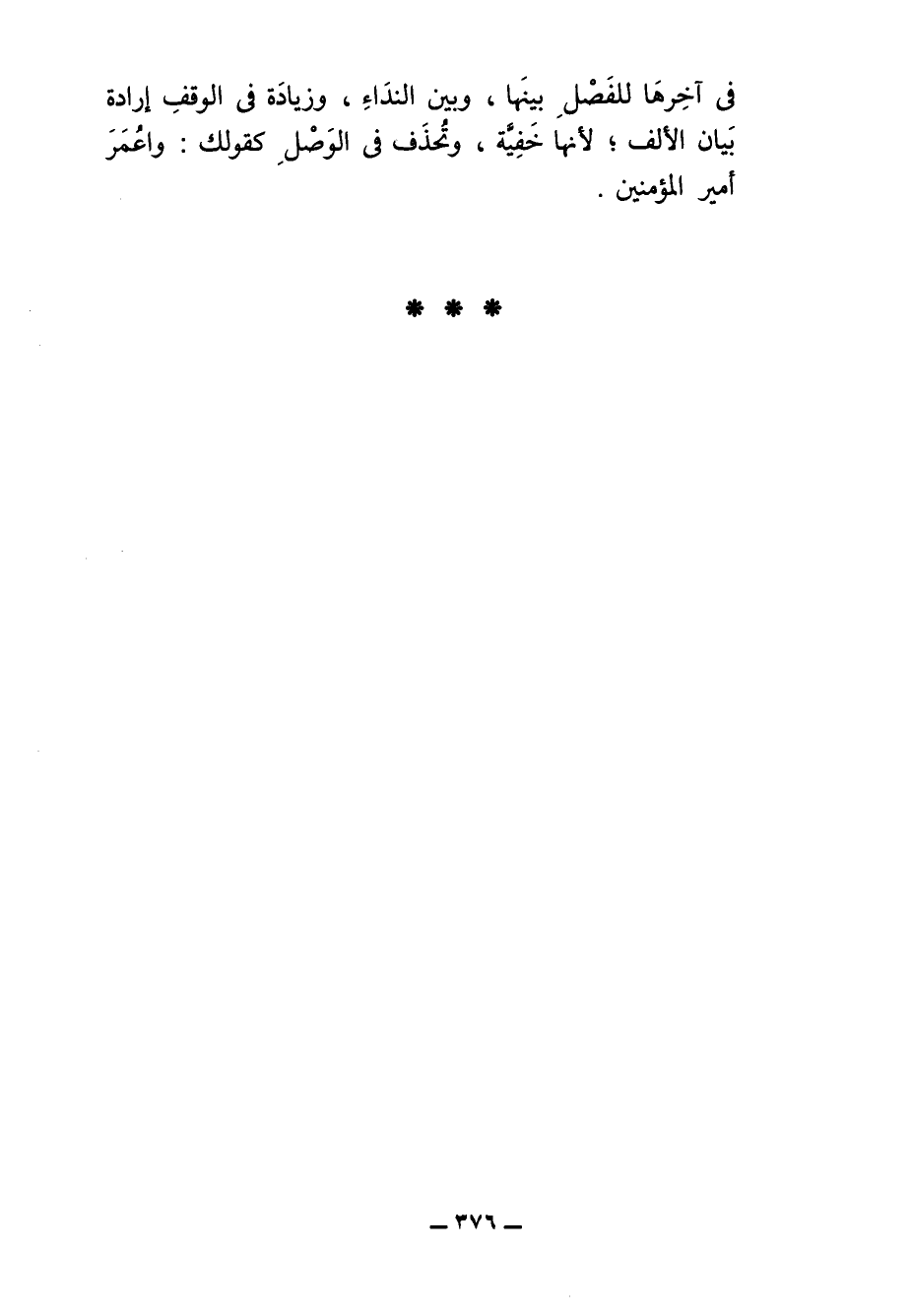 في آخِرهَا للفَصْلِ بينَها، وبين الندَاءِ، وزيادَة في الوقفِ إرادة بَيان الألف؛ لأنها خَفِيَّة، وتُحذَف في الوَصْلِ كقولك: واعُمَرَ أمير المؤمنين.
