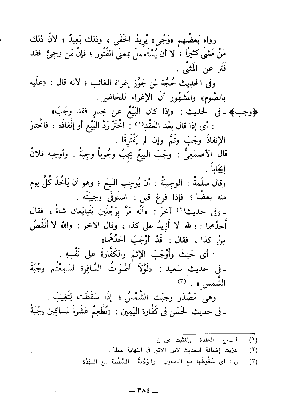 (¬3) ن: أي سُقُوطَها مع المَغِيب. والوَجْبَةُ: السَّقْطة مع الهَدَّة.