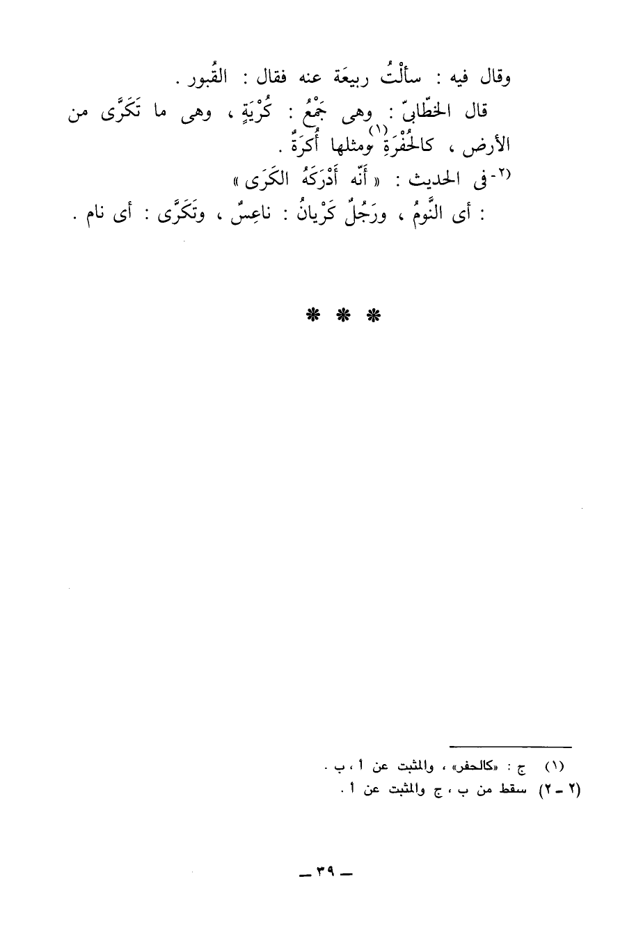 قال الخطّابيّ: وهي جَمْعُ: كُرْيَةٍ، وهي ما تَكَرَّى من الأرض، كالحُفْرَةِ (¬1) ومثلها أُكرَةٌ.