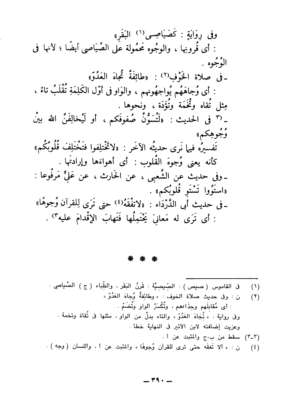 (¬2) ن: وفي حديث صلاة الخوف: "وطائِفةٌ وُجاهَ العَدُوّ"
