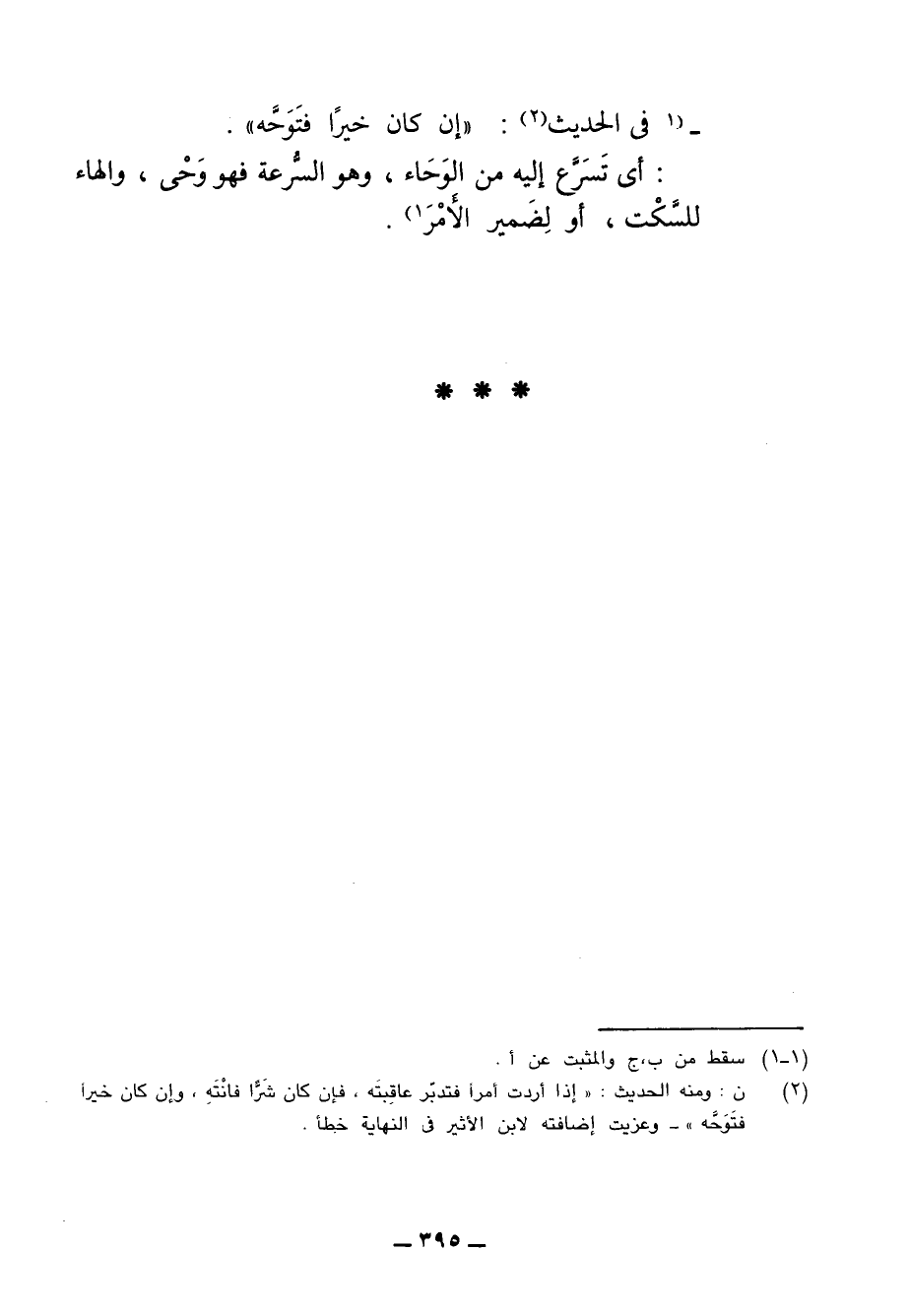 (¬2) ن: ومنه الحديث: "إذا أردت أمراً فتدبّر عاقِبتَه، فإن كان شَرًّا فانْتَهِ، وإن كان خيراً فتَوَحَّه" - وعزيت إضافته لابن الأثير في النهاية خطأ.