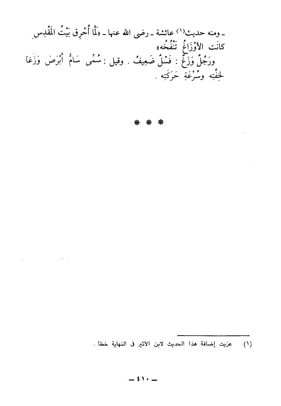(¬1) عزيت إضافة هذا الحديث لابن الأثير في النهاية خطأ.