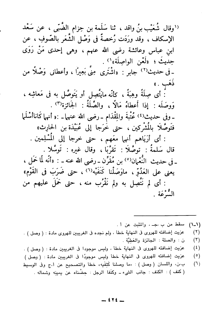 (¬4) عزيت إضافته للهروى في النهاية خطأ، وليس موجودا في الغريبين مادة: (وصل).