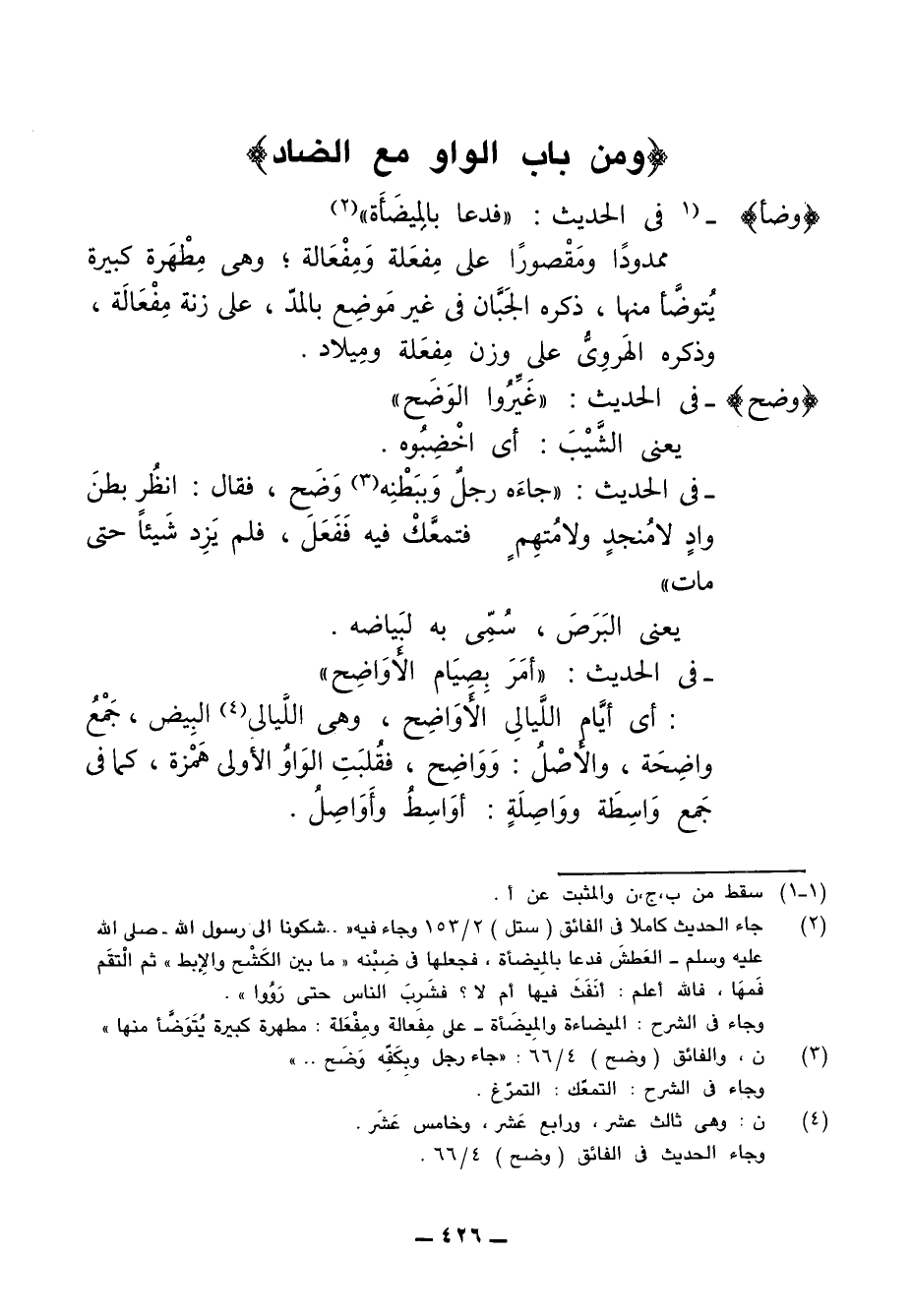(¬3) ن، والفائق (وضح) 4/ 66: "جاء رجل وبِكَفِّه وَضَح .. "