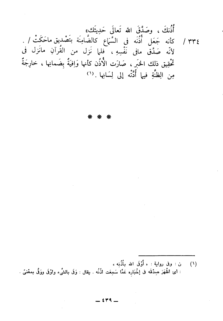 أُذُنكَ، وصَدَّقَ الله تَعالَى حَدِيثَك"