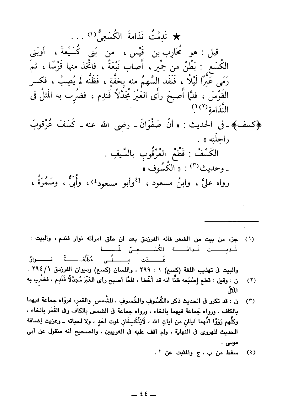 * نَدِمْتُ نَدَامةَ الكُسَعِىُّ (¬1) ...