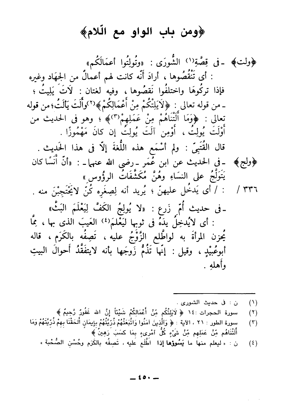 (ولت) - في قِصَّةِ (¬1) الشُّورَى: "وتُولِتُوا أعمَالَكُم"