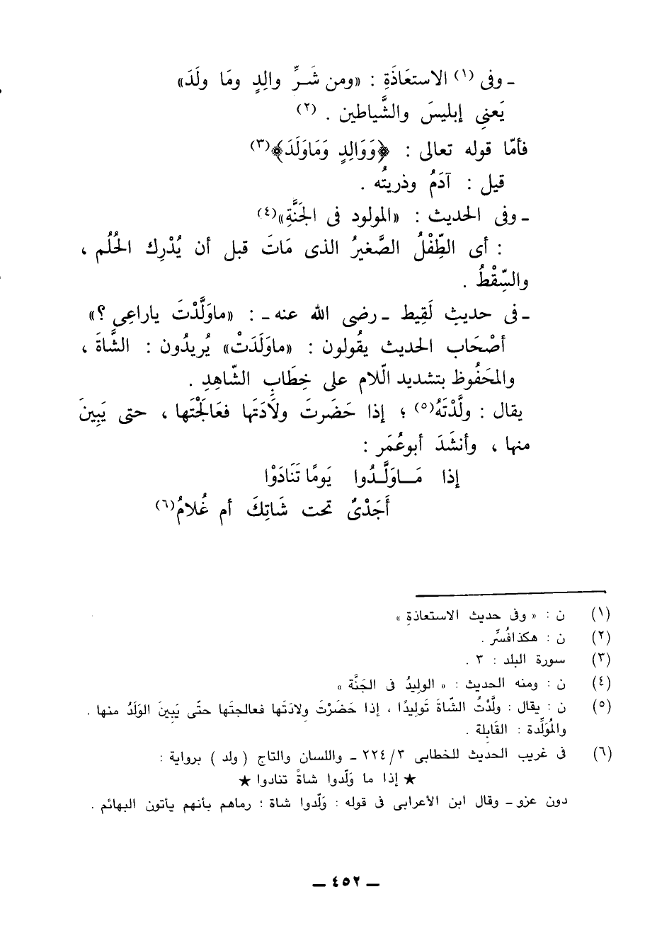 (¬6) في غريب الحدَيث للخطابى 3/ 224 - واللسان والتاج (ولد) برواية: