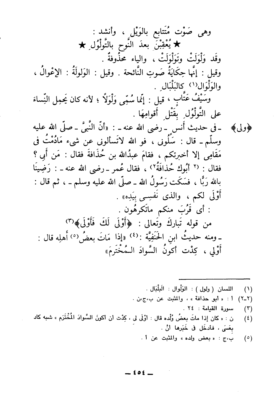 (¬4) ن: "كان إذا ماتَ بعضُ وُلْده قال: أوْلَى لىِ، كِدْت أن أكونَ السَّوادَ المُخْتَرَم" شبه كاد بِعَسىَ، فأدخَل في خَبَرها أنْ.