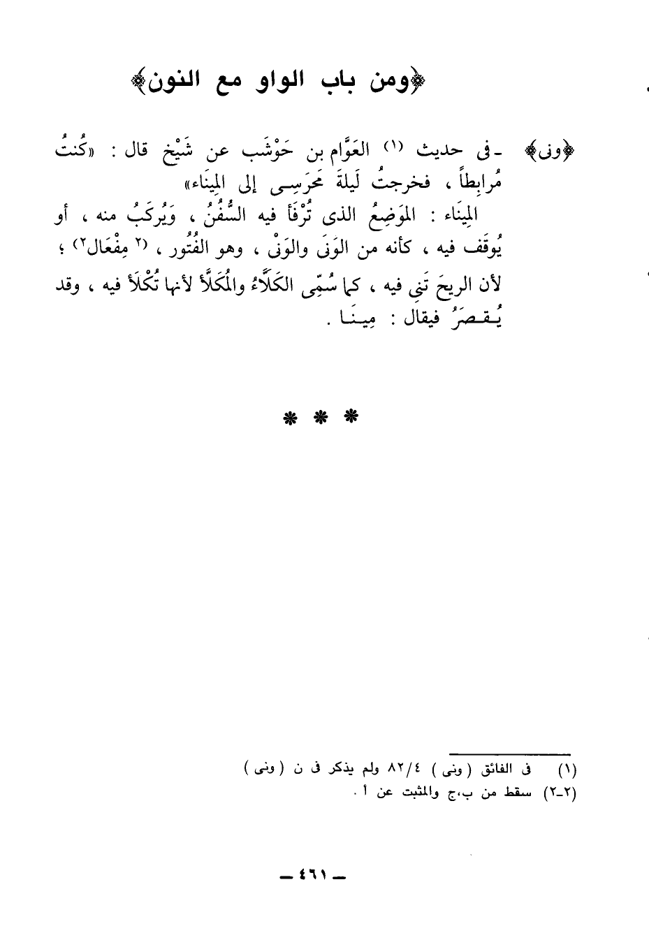 (¬1) في الفائق (ونى) 4/ 82 ولم يذكر في ن (ونى)