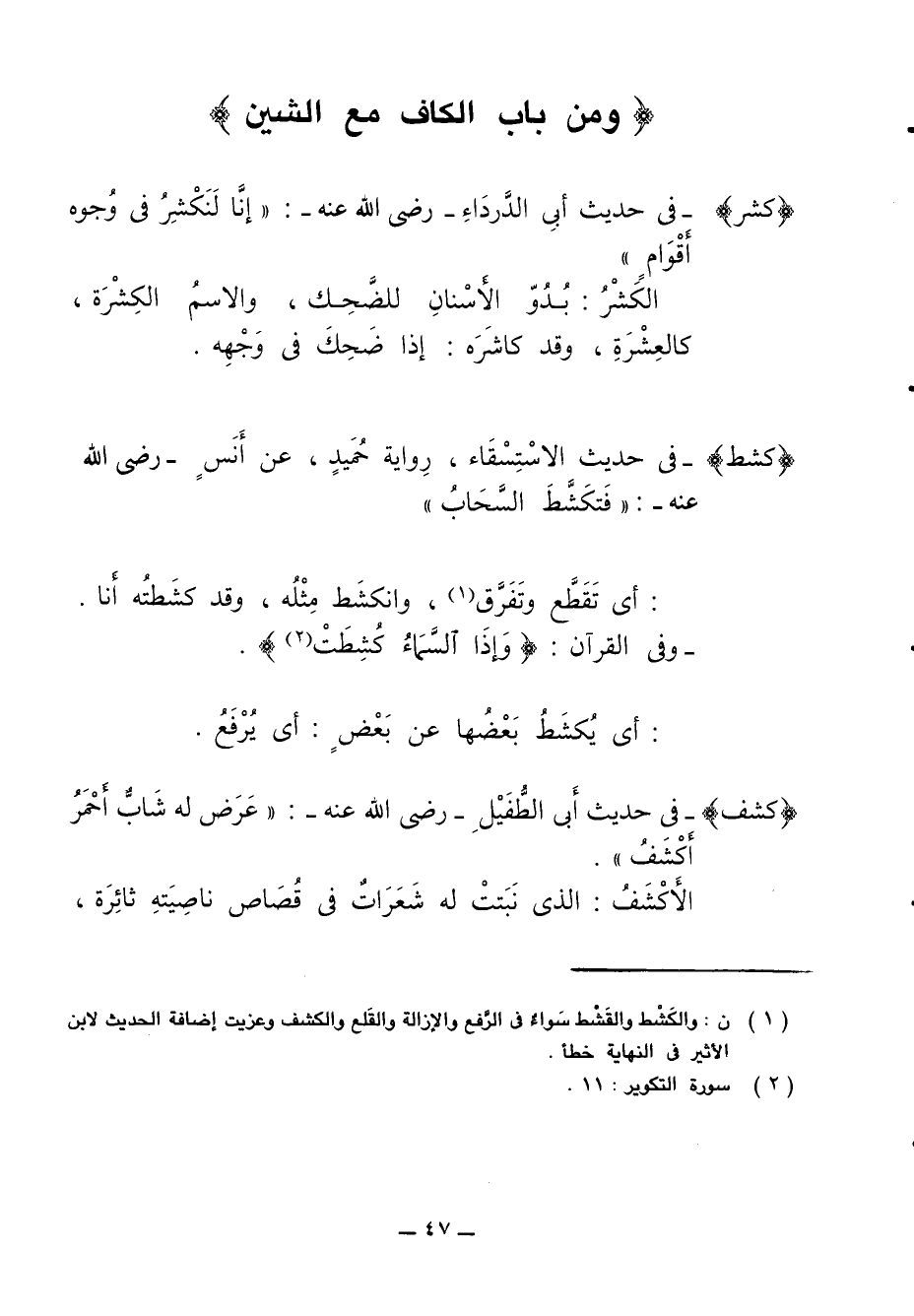(ومن باب الكاف مع الشين)