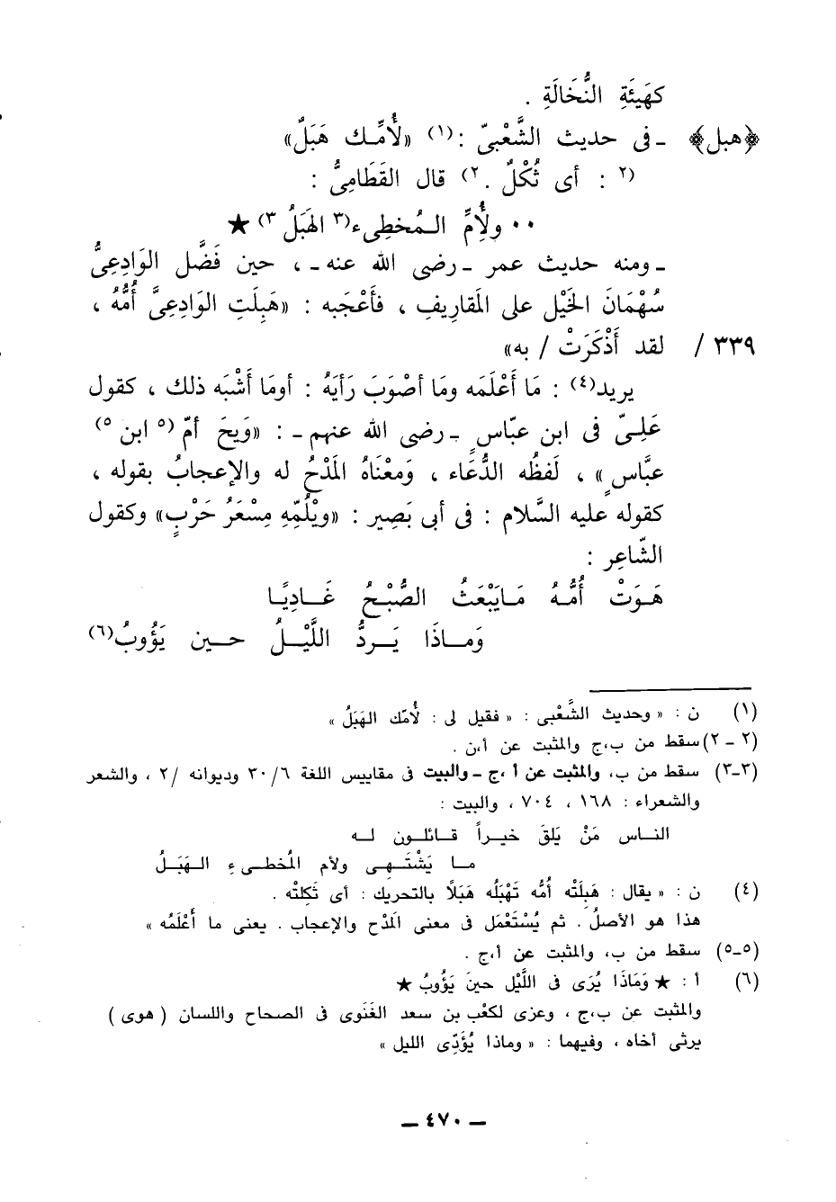 (هبل) - في حديث الشَّعْبىّ: (¬1) "لأُمِّك هَبَلٌ"