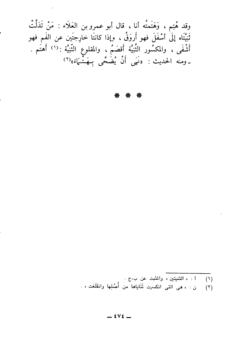 - ومنه الحديث: "نَهَى أَنْ يُضحَّى بِهَتْمَاءَ" (¬2)