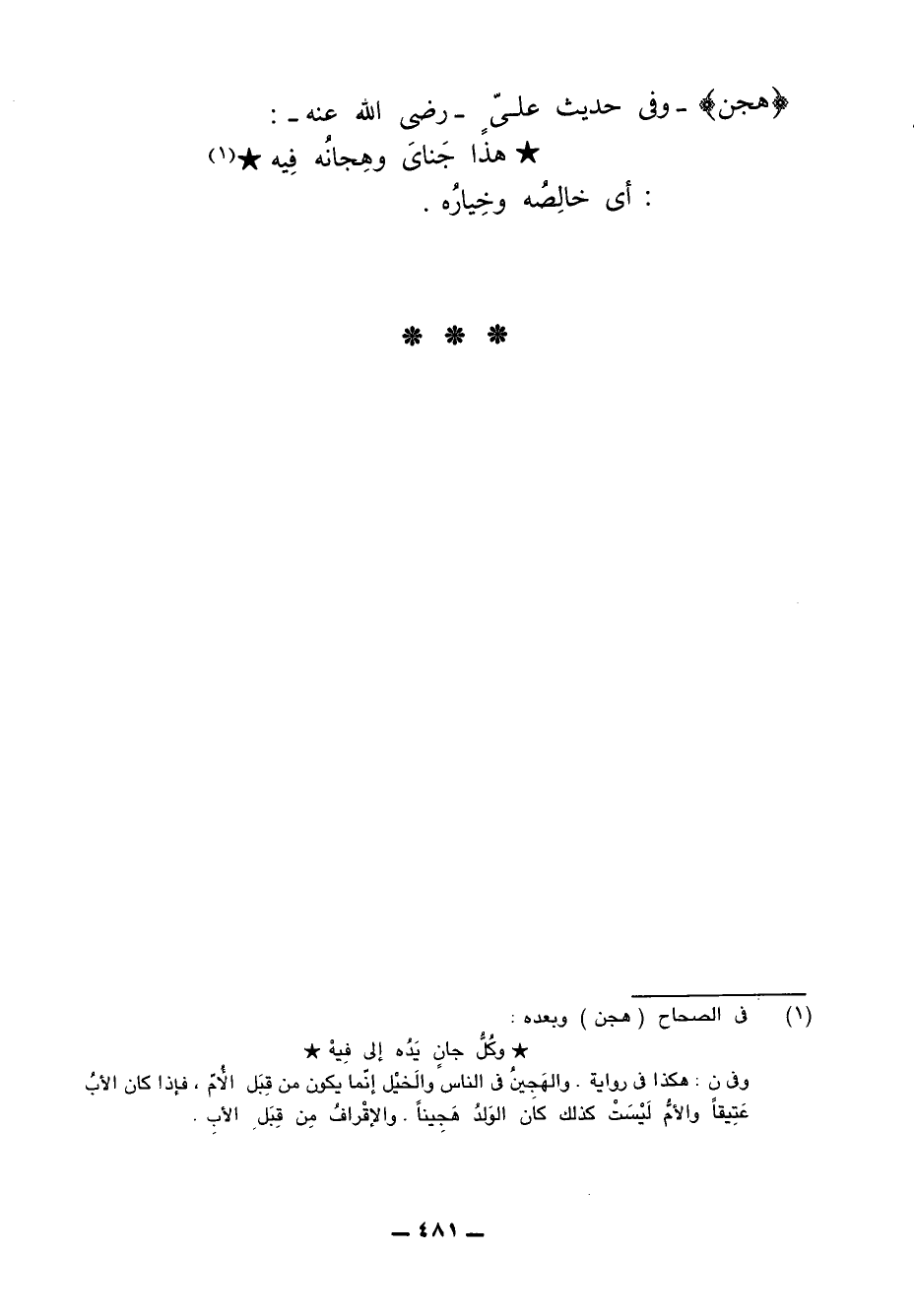 * هذا جَناىَ وهِجانُه فِيه * (¬1)