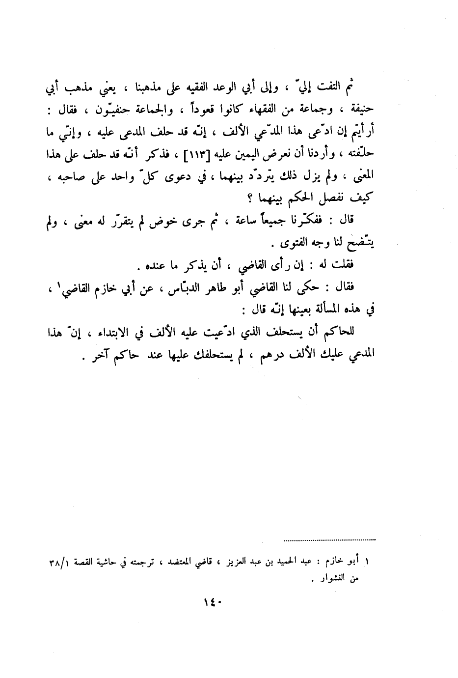 ثم التفت إليّ، وإلى أبي الوعد الفقيه على مذهبنا، يعني مذهب أبي حنيفة، وجماعة من الفقهاء كانوا قعودا، والجماعة حنفيّون، فقال:
