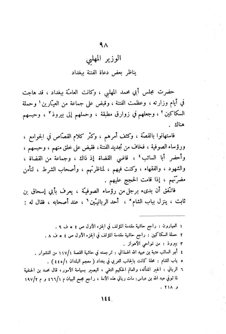 98 الوزير المهلبي يناظر بعض دعاة الفتنة ببغداد