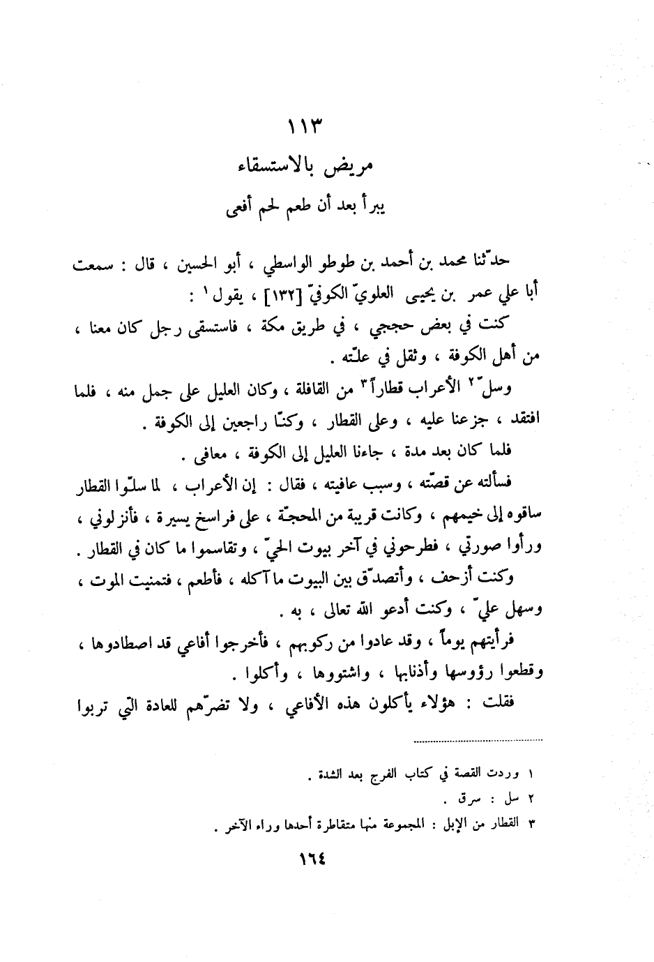 كنت في بعض حججي، في طريق مكة، فاستسقى رجل كان معنا، من أهل الكوفة، وثقل في علّته.