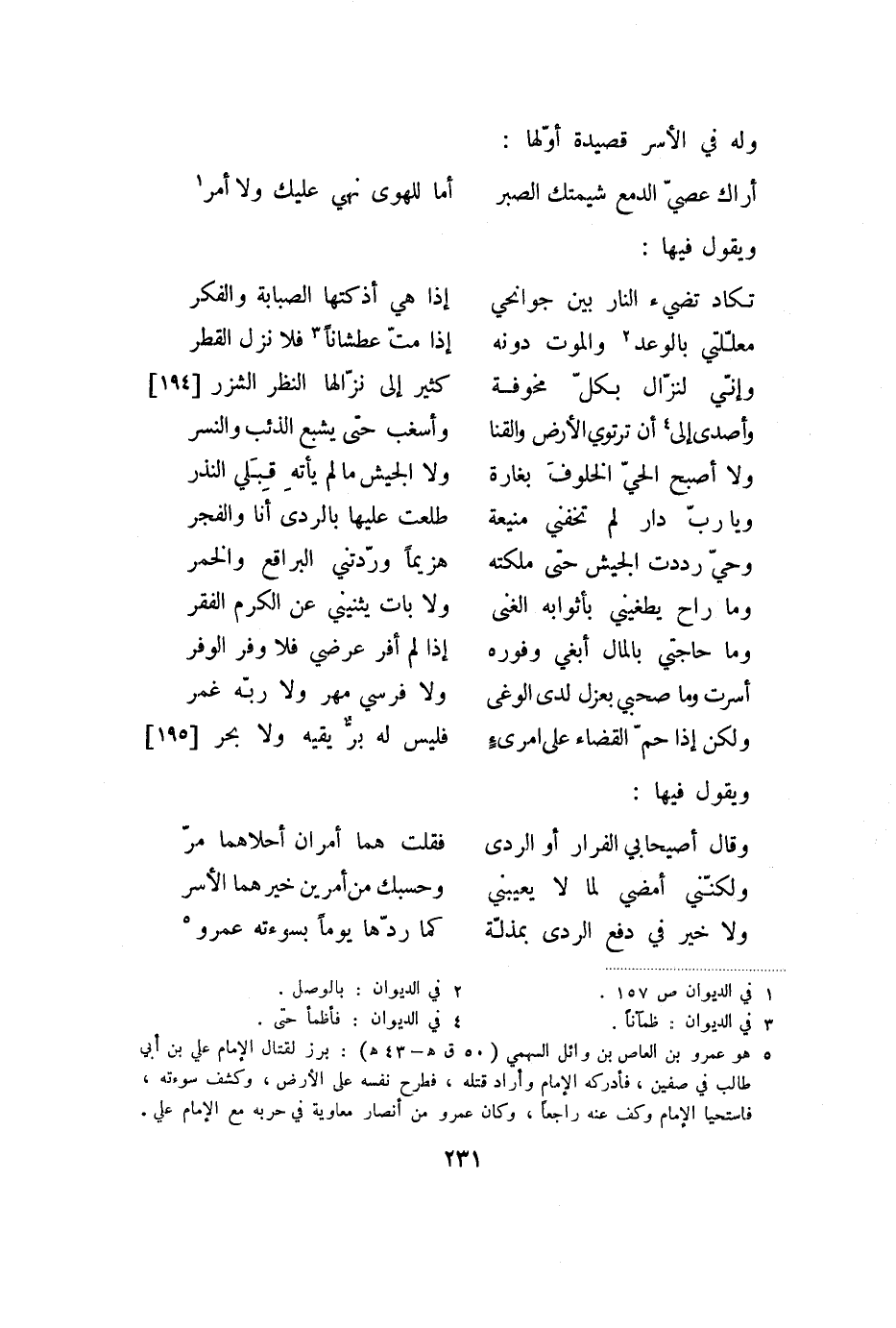 أراك عصيّ الدمع شيمتك الصبر ... أما للهوى نهي عليك ولا أمر «1»