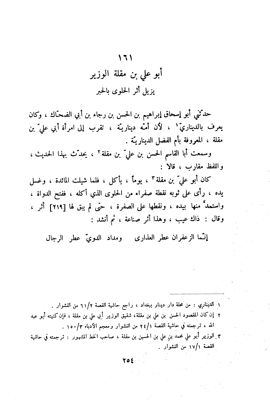 161 أبو علي بن مقلة الوزير يزيل أثر الحلوى بالحبر