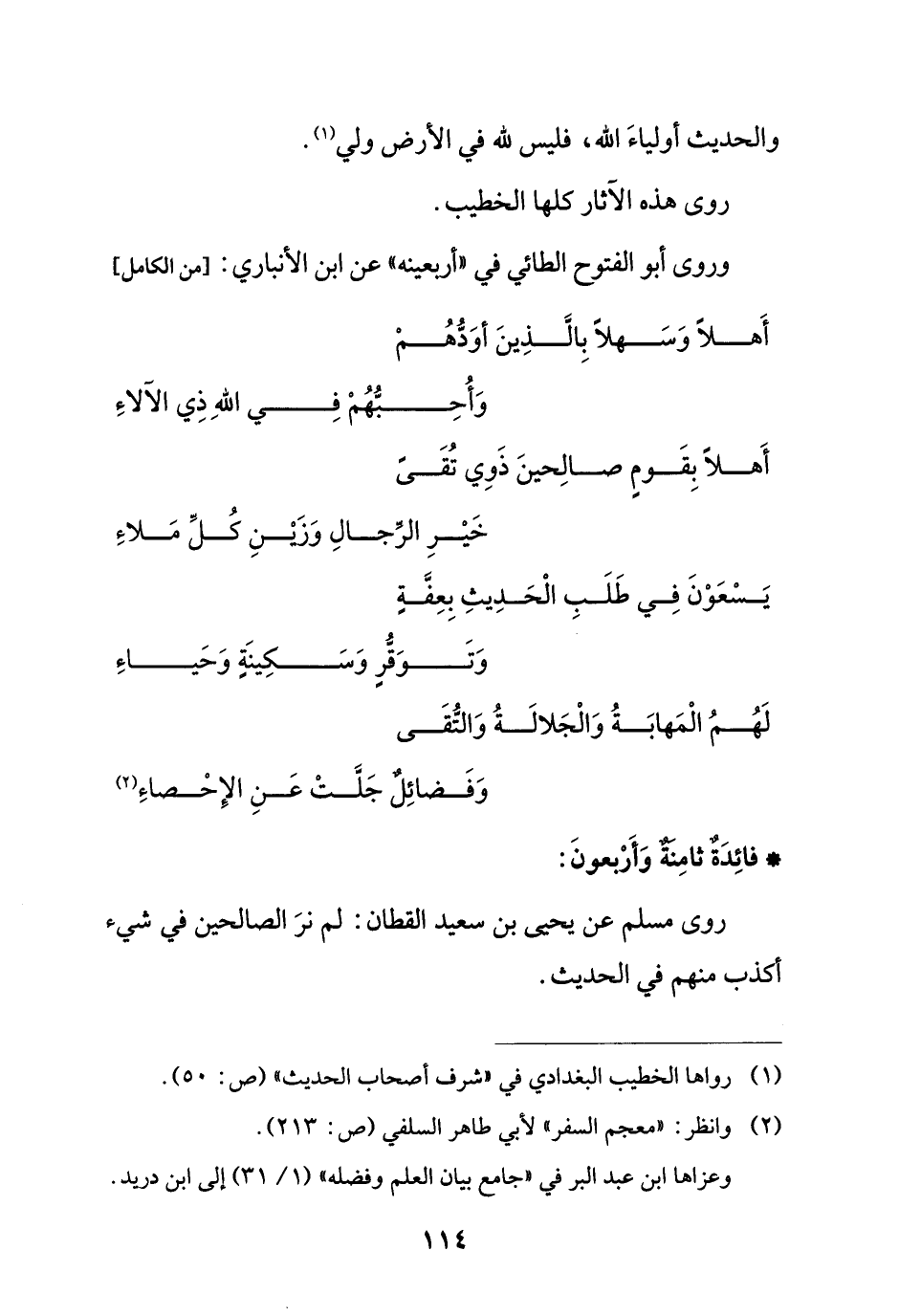 وروى أبو الفتوح الطائي في " أربعينه " عن ابن الأنباري: [من الكامل]