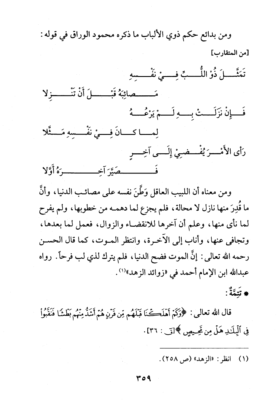 ومن بدائع حكم ذوي الألباب ما ذكره محمود الوراق في قوله: [من المتقارب]