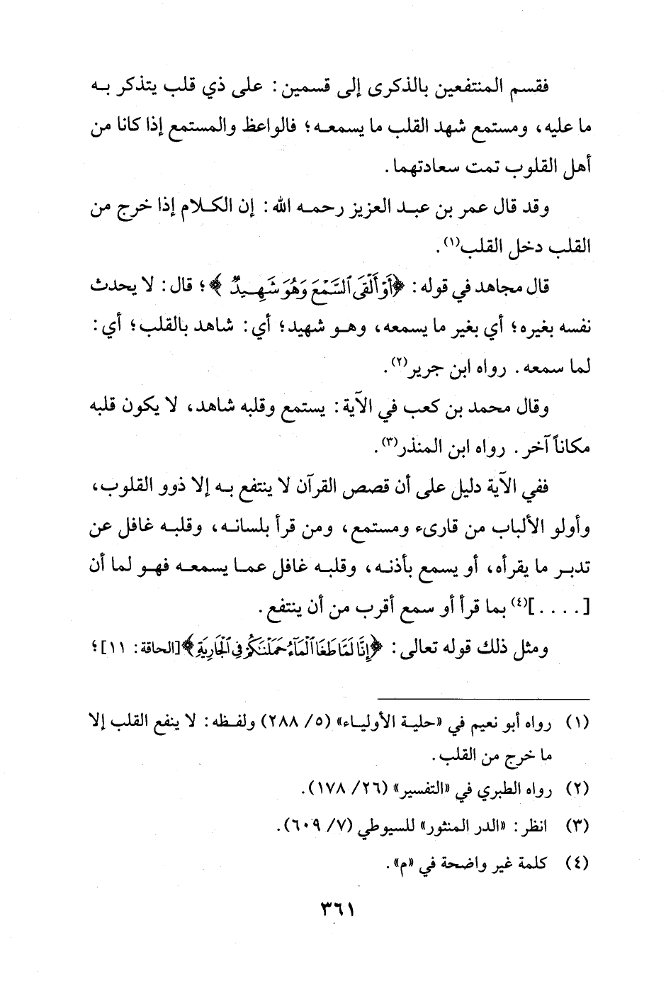 وقال محمَّد بن كعب في الآية: يستمع وقلبه شاهد، لا يكون قلبه مكاناً آخر. رواه ابن المنذر (¬3).