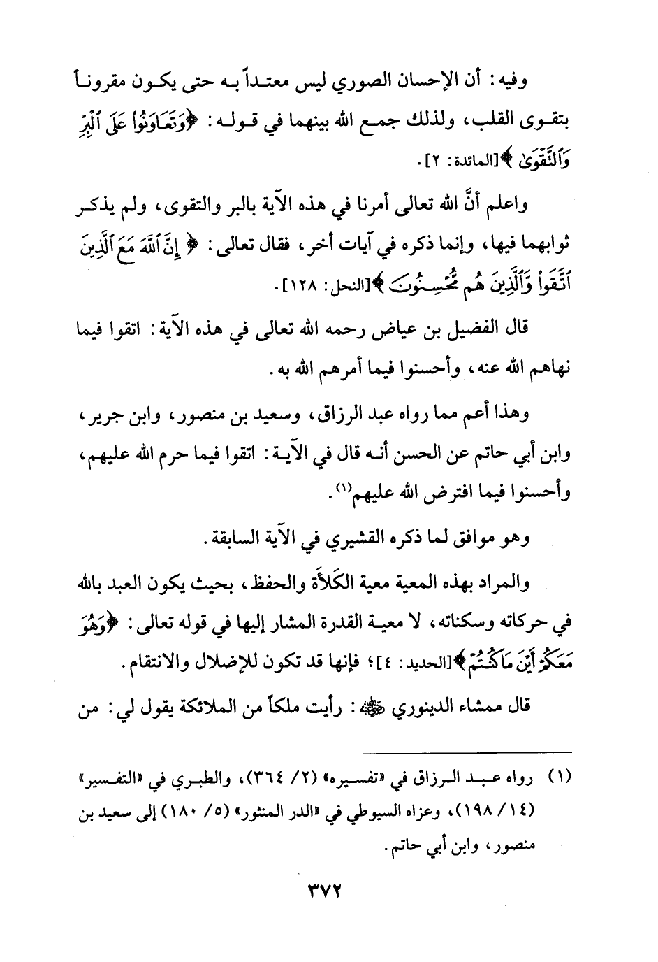 قال الفضيل بن عياض رحمه الله تعالى في هذه الآية: اتقوا فيما نهاهم الله عنه، وأحسنوا فيما أمرهم الله به.