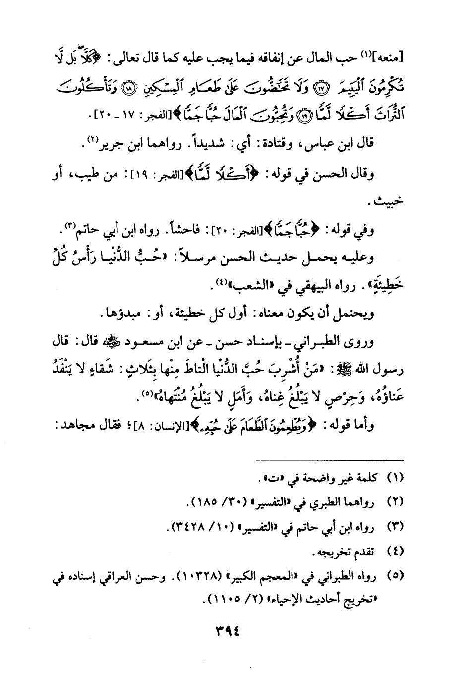 وفي قوله: {حُبًّا جَمًّا} [الفجر: 20]؛ فاحشًا. رواه ابن أبي حاتم (¬3).