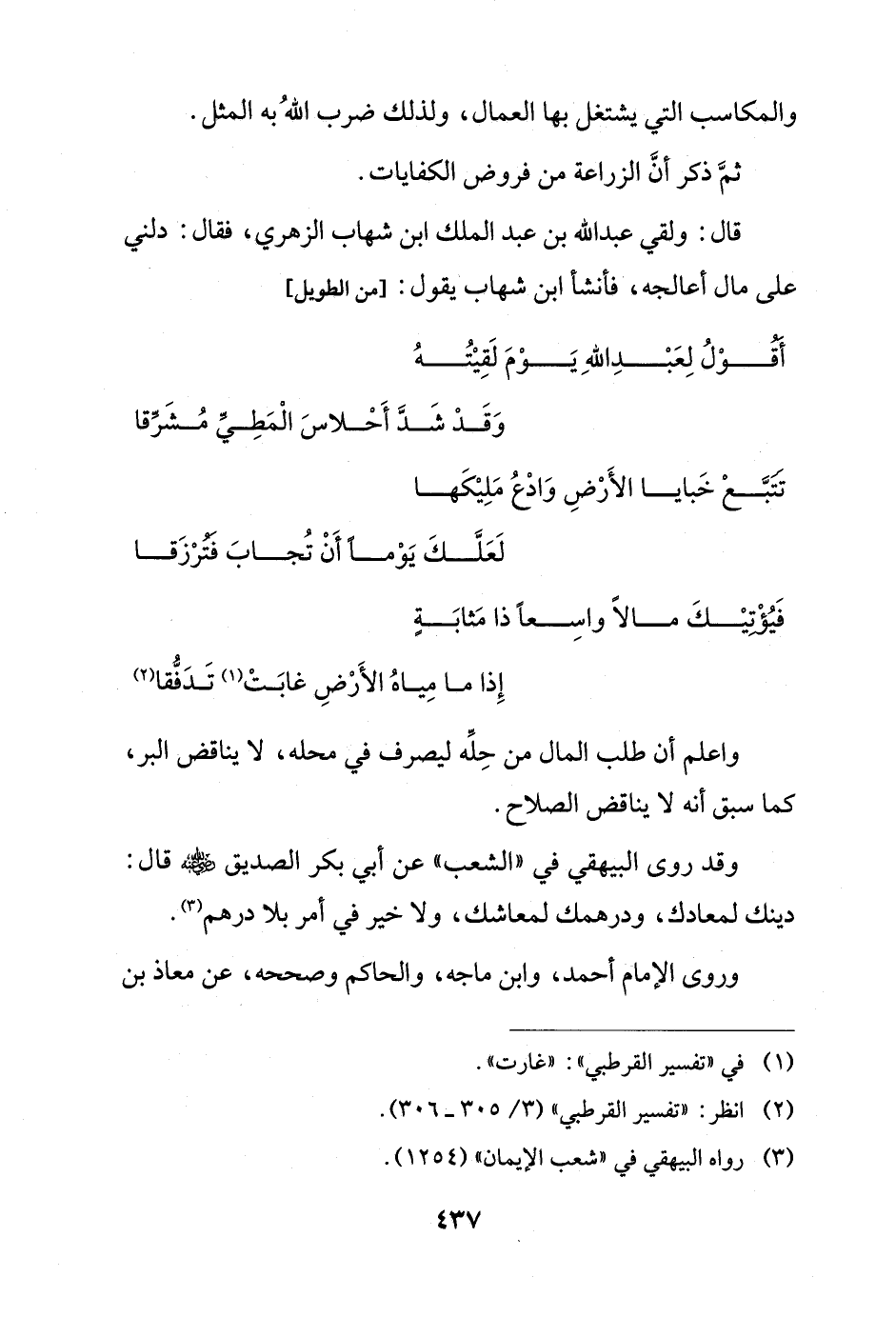 قال: ولقي عبد الله بن عبد الملك ابن شهاب الزهريّ، فقال: دلني على مال أعالجه، فأنشأ ابن شهاب يقول: [من الطويل]