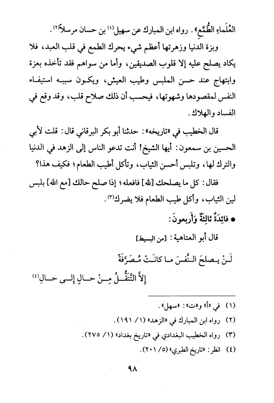 العُلَماءِ الطُّمَّعِ ". رواه ابن المبارك عن سهيل (¬1) بن حسان مرسلاً (¬2).