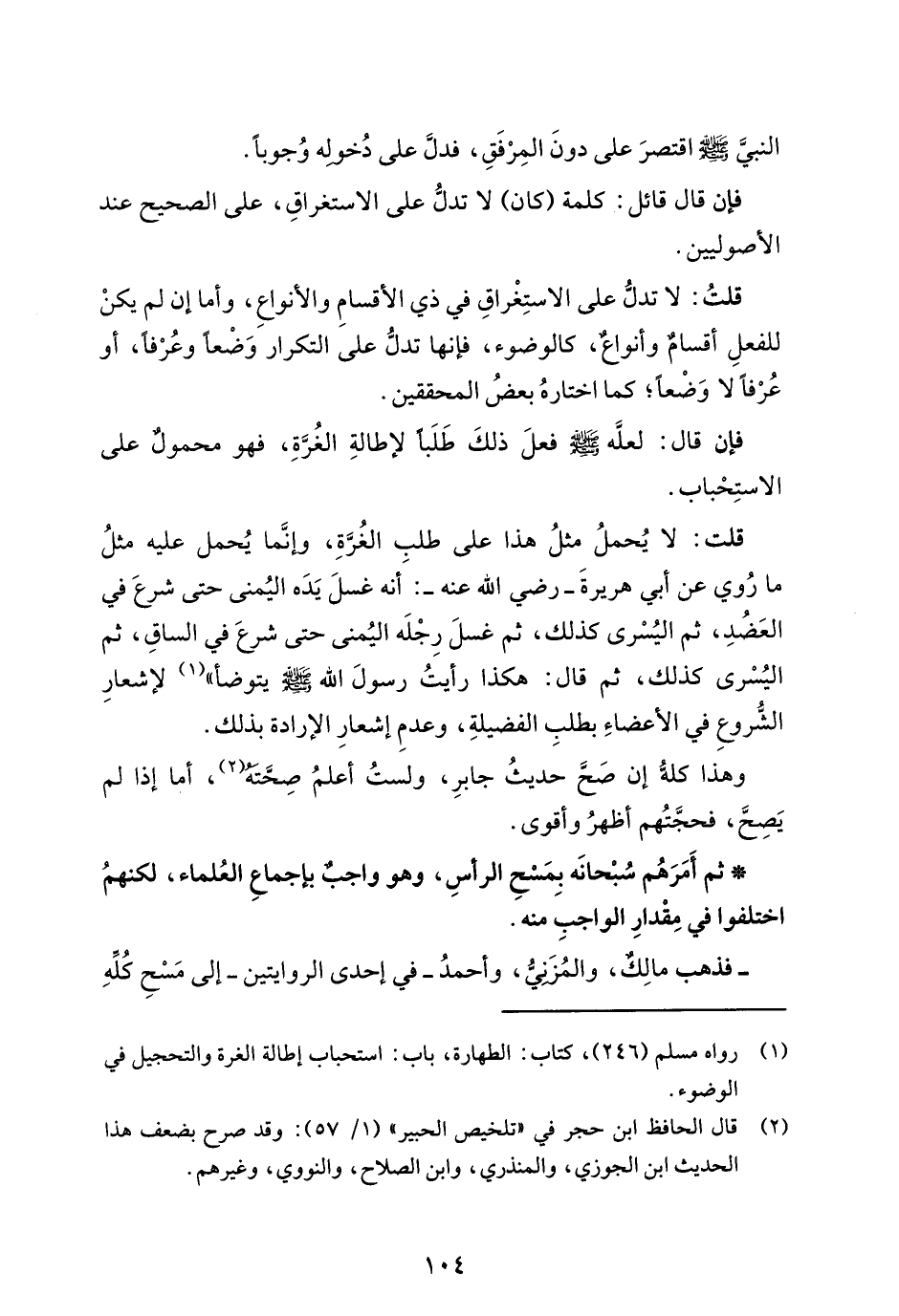 قلت: لا يُحملُ مثلُ هذا على طلبِ الغُرَّةِ، وإنَّما يُحمل عليه مثلُ ما رُوي عن أبي هريرةَ -رضي الله عنه-: أنه غسلَ يَدَه اليُمنى حتى شرعَ في العَضُدِ، ثم اليُسْرى كذلك، ثم غسلَ رِجْلَه اليُمنى حتى شرعَ في الساقِ، ثم اليُسْرى كذلك، ثم قال: هكذا رأيتُ رسولَ الله - صلى الله عليه وسلم - يتوضأ" (¬1) لإشعارِ الشُّروعِ في الأعضاءِ بطلبِ الفضيلةِ، وعدمِ إشعارِ الإرادة بذلك.