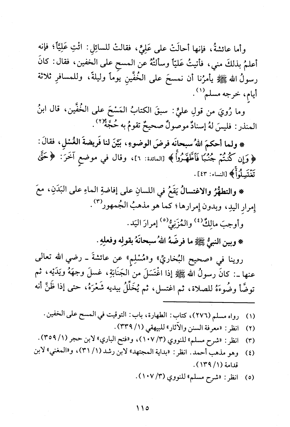 * ولما أحكمَ اللهُ سبحانَه فرضَ الوضوء، بيَّنَ لنا فَريضةَ الغُسْلِ، فقالَ: {وَإِنْ كُنْتُمْ جُنُبًا فَاطَّهَّرُوا} [المائدة: 6]، وقال في موضعٍ آخَرَ: {حَتَّى تَغْتَسِلُوا} [النساء: 43].