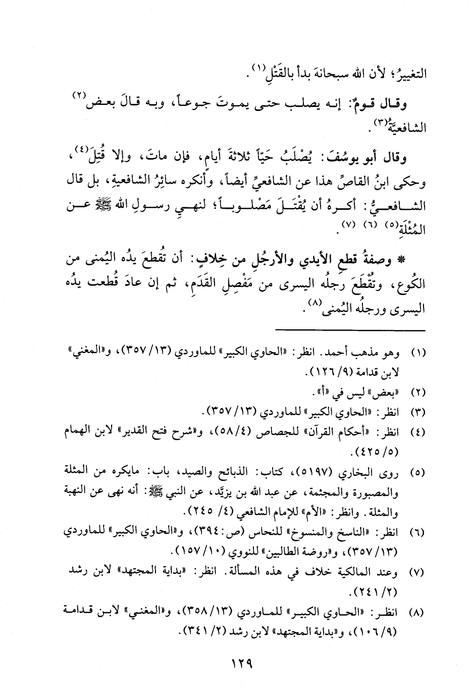 (¬5) روى البخاري (5197)، كتاب: الذبائح والصيد، باب: ما يكره من المثلة والمصبورة والمجثمة، عن عبد الله بن يزيَّد، عن النبي - صلى الله عليه وسلم -: أنه نهى عن النهبة والمثلة. وانظر: "الأم" للإمام الشافعي (4/ 245).