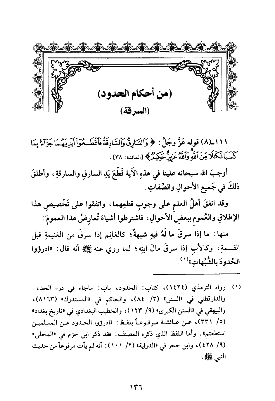 111 - (8) قوله عَزَّ وجَلَّ: {وَالسَّارِقُ وَالسَّارِقَةُ فَاقْطَعُوا أَيْدِيَهُمَا جَزَاءً بِمَا كَسَبَا نَكَالًا مِنَ اللَّهِ وَاللَّهُ عَزِيزٌ حَكِيمٌ} [المائدة: 38].