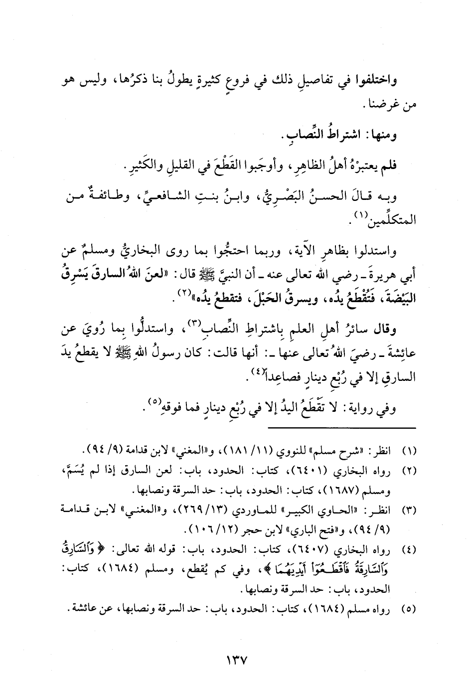 (¬5) رواه مسلم (1684)، كتاب: الحدود، باب: حد السرقة ونصابها، عن عائشة.
