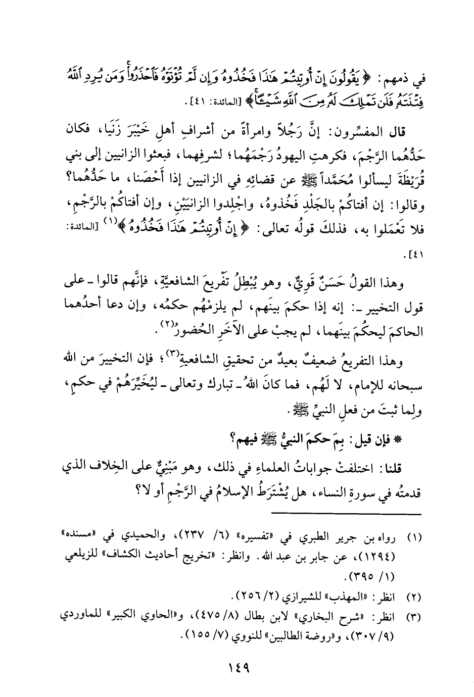 قلنا: اختلفتْ جواباتُ العلماءِ في ذلك، وهو مَبْنِيٌّ على الخِلاف الذي قدمتُه في سورةِ النساء، هل يُشْتَرَطُ الإسلامُ في الرَّجْمِ أو لا؟