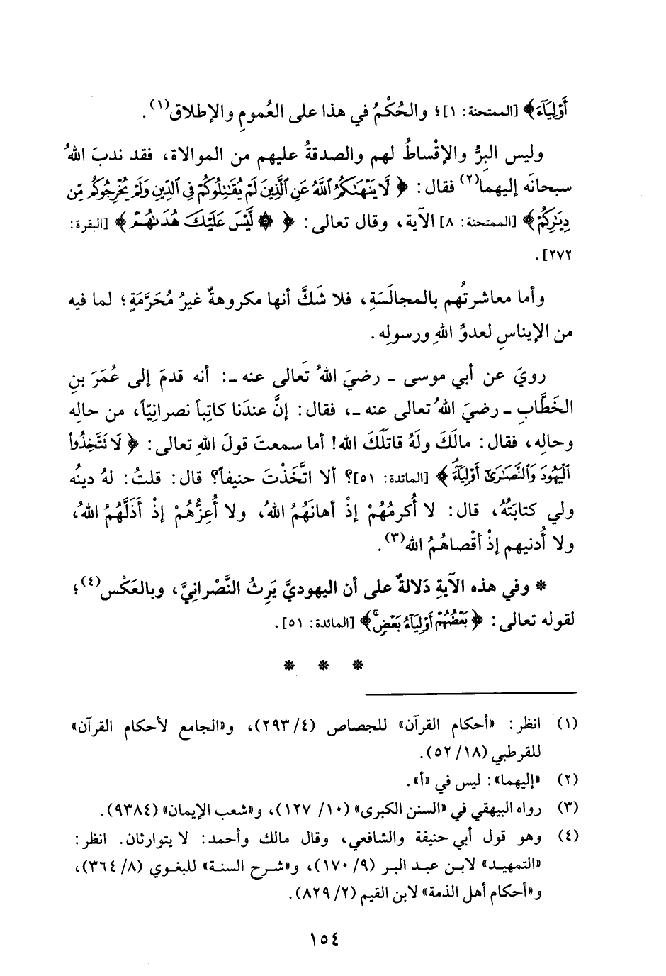وليس البِرُّ والإقْساطُ لهم والصدقةُ عليهم من الموالاة، فقد ندبَ اللهُ سبحانَه إليهما (¬2) فقال: {لَا يَنْهَاكُمُ اللَّهُ عَنِ الَّذِينَ لَمْ يُقَاتِلُوكُمْ فِي الدِّينِ وَلَمْ يُخْرِجُوكُمْ مِنْ دِيَارِكُمْ} [الممتحنة: 8] الآية، وقال تعالى: {لَيْسَ عَلَيْكَ هُدَاهُمْ} [البقرة: 272].