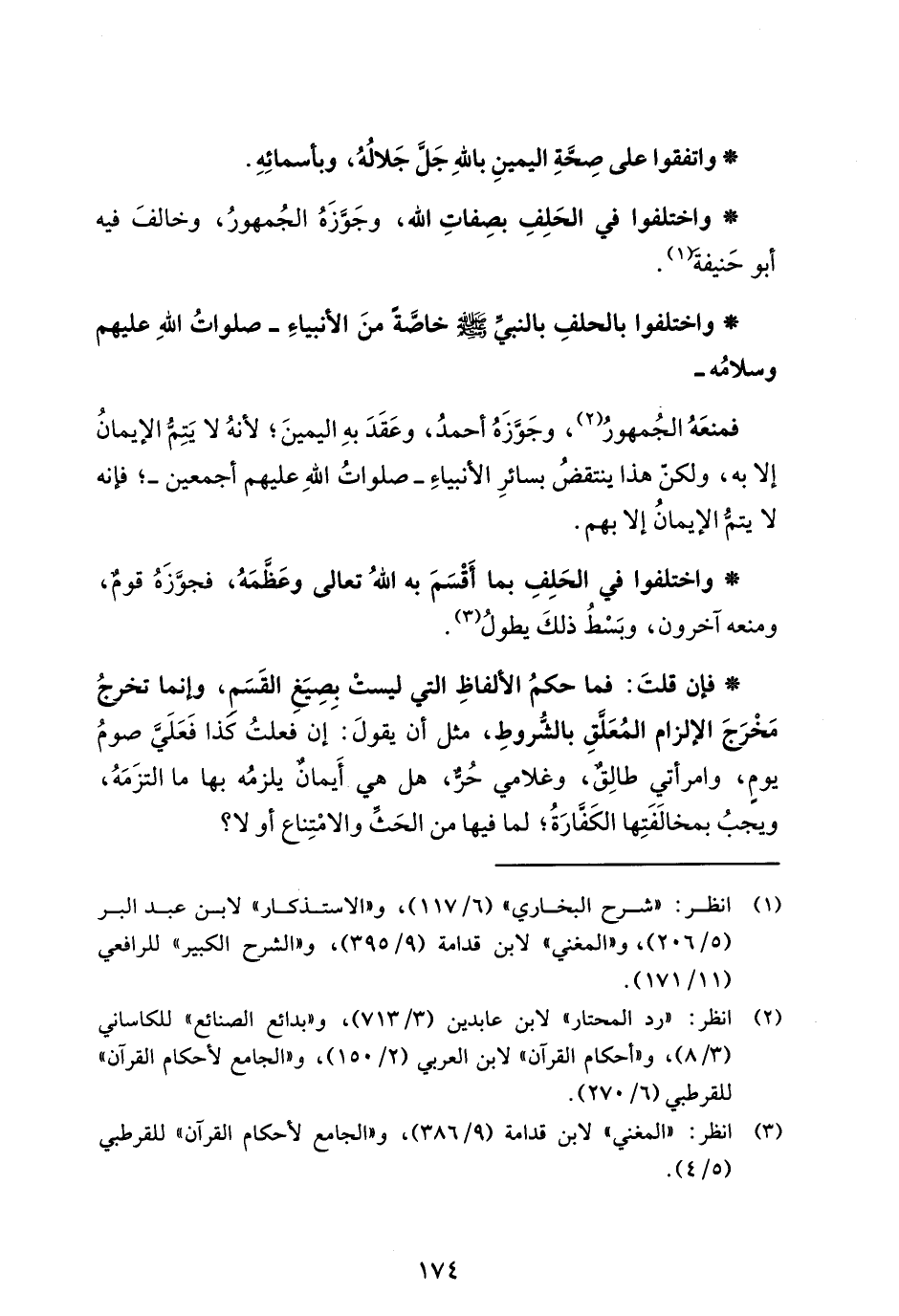 * واختلفوا في الحَلِفِ بصِفاتِ الله، وجَوَّزَهُ الجُمهورُ، وخالفَ فيه أبو حَنيفةَ (¬1).