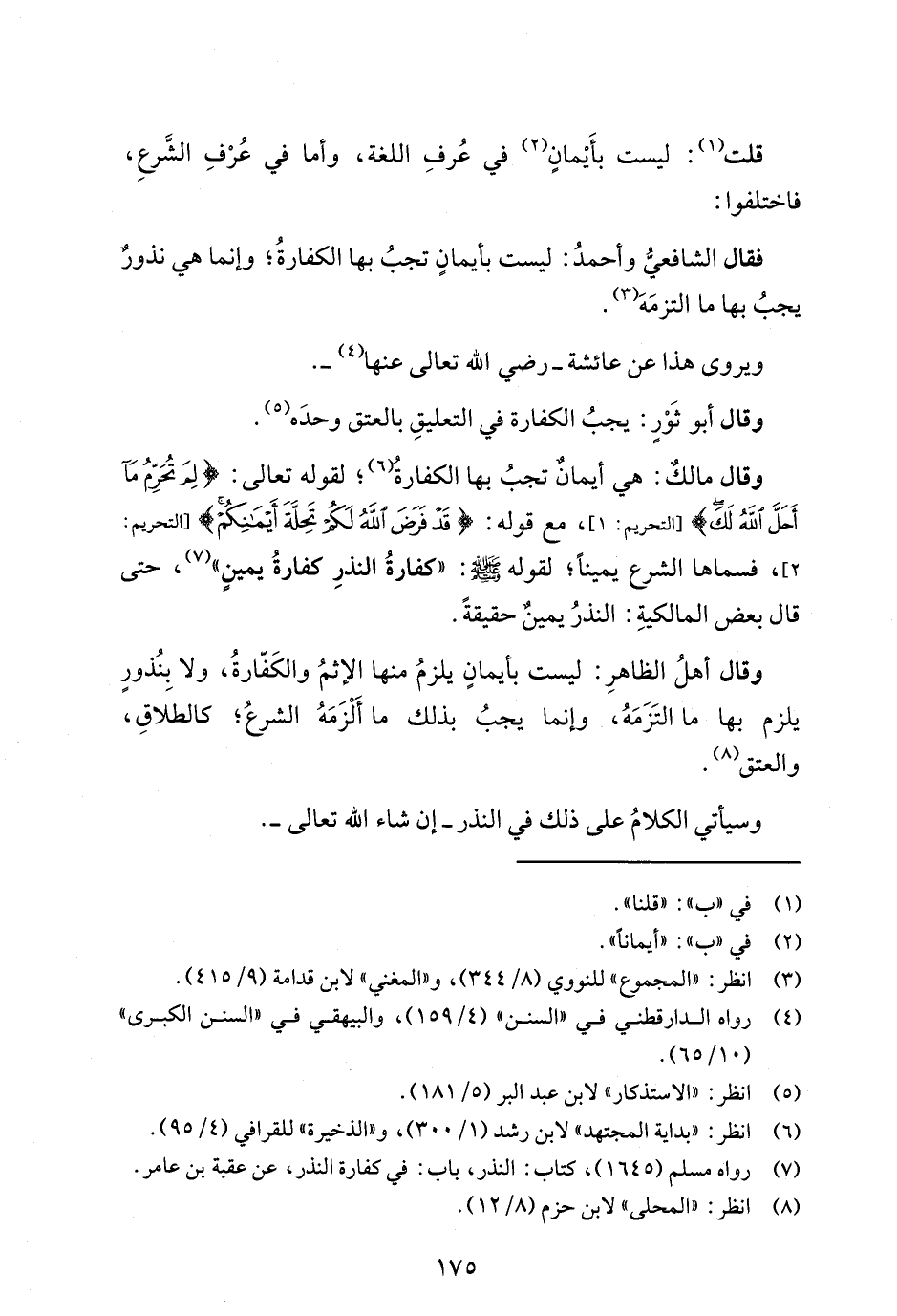 فقال الشافعيُّ وأحمدُ: ليست بأيمانٍ تجبُ بها الكفارةُ؛ وإنما هي نذورٌ يجبُ بها ما التزمَه (¬3).