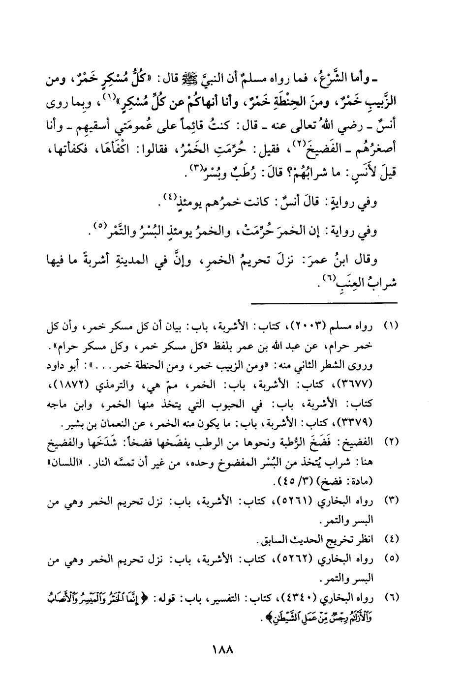 (¬6) رواه البخاري (4340)، كتاب: التفسير، باب: قوله: {إِنَّمَا الْخَمْرُ وَالْمَيْسِرُ وَالْأَنْصَابُ وَالْأَزْلَامُ رِجْسٌ مِنْ عَمَلِ الشَّيْطَانِ}.