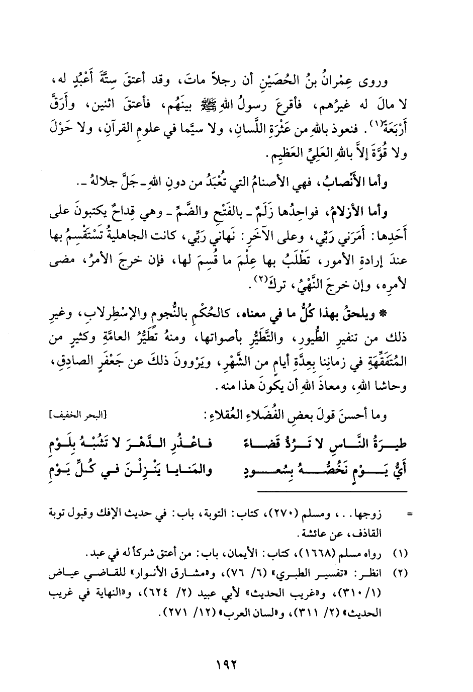 وروى عمرانُ بنُ الحُصَيْنِ أن رجلاً ماتَ، وقد أعتقَ سِتَّةَ أَعْبُدٍ له، لا مالَ له غيرُهم، فأقرعَ رسولُ اللهِ - صلى الله عليه وسلم - بينَهُم، فأعتقَ اثنين، وأَرَقَّ أَرْبَعَةً (¬1). فنعوذ باللهِ من عَثْرَةِ اللَّسانِ، ولا سيَّما في علومِ القرآنِ، ولا حَوْلَ ولا قُوَّةَ إلَّا باللهِ العَلِيِّ العَظيِم.