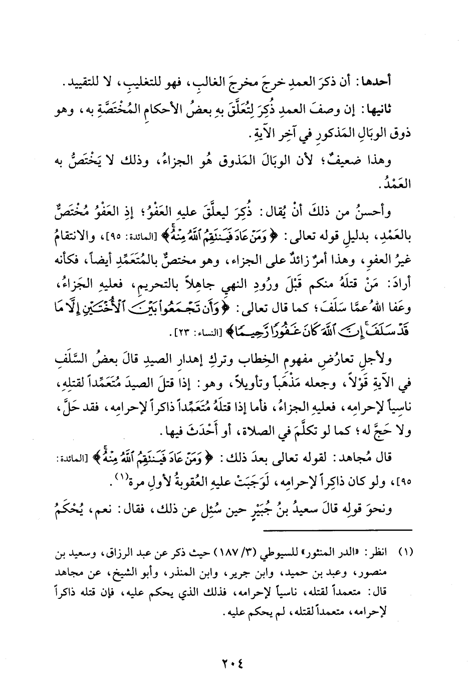 (¬1) انظر: "الدر المنثور" للسيوطي (3/ 187) حيث ذكر عن عبد الرزاق، وسعيد بن منصور، وعبد بن حميد، وابن جرير، وابن المنذر، وأبو الشيخ، عن مجاهد قال: متعمداً لقتله، ناسياً لإحرامه، فذلك الذي يحكم عليه، فإن قتله ذاكراً لإحرامه، متعمداً لقتله، لم يحكم عليه.