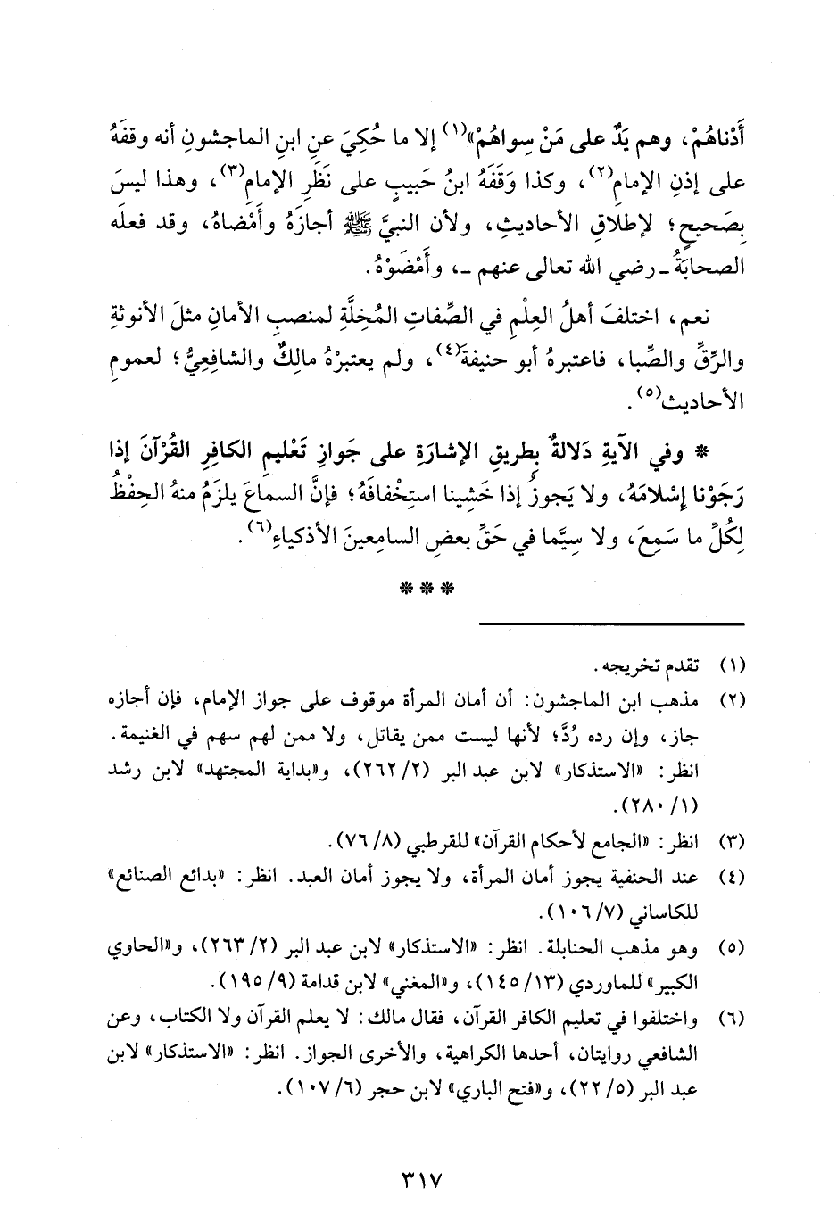 (¬6) واختلفوا في تعليم الكافر القرآن، فقال مالك: لا يعلم القرآن ولا الكتاب، وعن الشافعي روايتان، أحدها الكراهية، والأخرى الجواز. انظر: "الاستذكار" لابن عبد البر (5/ 22)، و"فتح الباري" لابن حجر (6/ 107).